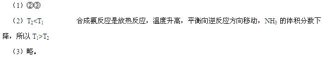 (2)一定条件下NH3的平衡体积分数随n(N2)变化如图所示(T-温度)。则T2?T1(填>、=、<),判断的依据是:?
