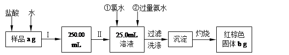 3、填空题 某氯化亚铁和氯化铁的混合物。现要测定其中铁元素的质量分数,按以下步骤