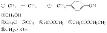 本题解析:8种物质中共有5种官能团,分别为碳碳双键、—OH、—Cl、—COOH、—COO—,其中—OH形成了两类物质,即②(酚)和③(醇),共6类物质。