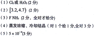 (5)已知:常温下Cu(OH)2的Ksp=2×10-20。计算Cu2++2H2O