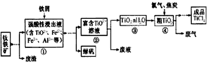 1、填空题 四氯化钛(TiCl4)是制取航天航空工业材料--钛合金的重要原料,由钛铁矿(主要成分是FeTiO3)制备