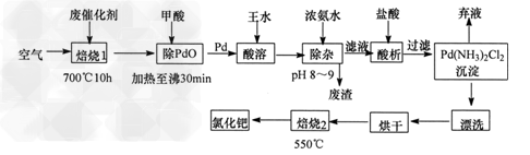 2、填空题 美国科学家理查德-海克和日本科学家根岸英一、铃木彰因在研发“有机合成中的钯催化的交叉偶联”而获得2010年度诺贝尔化学奖。有机合成常用的钯/活性炭催化剂,长期使用催化剂会被杂质(如:铁、有机物等)污染而失去活性,成为废催化剂,需对其再生回收。一种由废催化剂制取氯化钯的工艺流程如下: