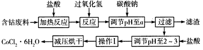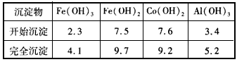 3、填空题 CoCl2·6H2O是一种饲料营养强化剂,以含钴废料(含少量Fe、Al等杂质)制取CoCl2·6H2O的一种新工艺流程如下图