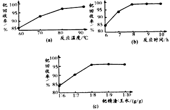 (2)80~90℃(或90℃左右);反应时间约为8h;钯精渣与王水的质量比为1:8