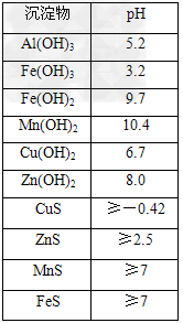 某软锰矿的主要成分为MnO2,还含Si(16.27%)、Fe(5.86%)、Al(3.42%)、Zn(2.68%)和Cu(0.86%)?等元素的化合物.部分阳离子以氢氧化物或硫化物的形式完全沉淀时溶液的pH见下表,回答下列问题