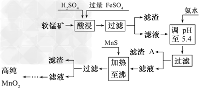 5、填空题 二氧化锰是制造锌锰干电池的基本材料.工业上以软锰矿为原料,利用硫酸亚铁制备高纯二氧化锰的流程如下