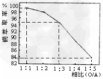 (2)萃取“相比”是表示萃取效果的参数之一,指的是有机相(O)与水相(A)的体积比。采用一定浓度的铜萃取剂萃取硫酸浸出液中的铜离子,测得当萃取时间为120s时, “相比”(O/A)对铜萃取率的影响如图所示。在实际操作中“相比”应选择_______?。(填序号)