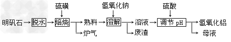 3、填空题 明矾石的主要成分是K2SO4·Al2(SO4)3·2Al?2O3·6H2O,此外还含有少量Fe2O3杂质。利用明矾石制备氢氧化铝的流程如下:?