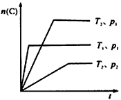 2、选择题  反应mA(g)+B(g) nC(g);△H=Q kJ/mol。在不同温度(T1和T2)及压强(p1和P2)下,产物C的物质的量n(C)与反应时间t的关系如图所示,下述判断正确的是