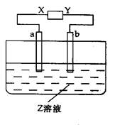 3、选择题 如下图,x、y分别是直流电源的两极,通电后发现a极板质量增加,b极板有无色无臭的气体放出,符合条件的是(?)