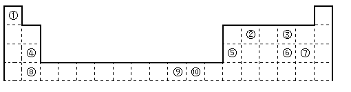 本题解析:考查元素周期表的结构,根据元素在周期表中的位置可知①~⑩分别为H、C、O、Mg、Al、S、Cl、Ca、Ni、Cu。