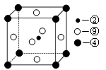 (2)科学发现,②、④、⑨三种元素的原子形成的晶体具有超导性,其晶胞的结构特点如图所示(图中②、④、⑨分别位于晶胞的体心、顶点、面心),则该化合物的化学式为?(用对应的元素符号表示),与④距离相等且最近的⑨有?个。