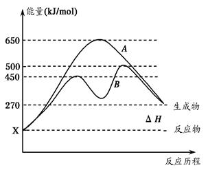 (2)反应物与生成物均为气态的某可逆反应在不同条件下的反应历程分别为A、B,