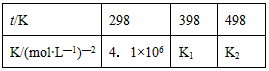 (2)在定体积的密闭容器中,进行如下化学反应:N2(g)+3H2(g)2NH3(g),其化学平衡常数K与t的关系如下表