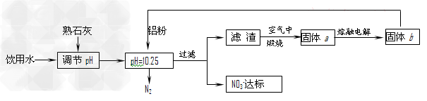3、填空题 饮用水中含有一定浓度的NO3-将对人类健康产生危害,NO3-能氧化人体血红蛋白中的Fe(II),使其失去携氧功能。为了降低饮用水中NO3-的浓度,某兴趣小组提出如下方案:?