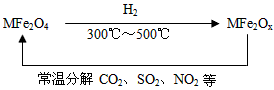(3)新型纳米材料氧缺位铁酸盐(MFe2Ox 3<x<4, M=Mn、Co、Zn或Ni)由铁酸盐(MFe2O4)经高温还原而得,常温下,它能使工业废气中的酸性氧化物分解除去。转化流程如图所示: