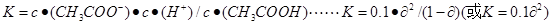 | C | 醋酸: CH3COOH  CH3COO-+H+ | 1.33% |