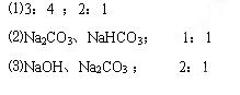 ⑴两份NaOH溶液A和B的物质的量浓度之比为?,通入CO2气体的体积之比是(相同条件)?。