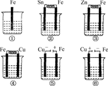 本题解析:根据装置图可知,①是铁的缓慢氧化,②③④分别构成原电池,其中②④中铁是负极,由于铁和铜金属性相差大,所以④中反应速率快,③中铁是正极;⑤⑥是电解池,其中⑤中铁是阳极,⑥中铁是阴极,被保护。因此正确的答案选C。