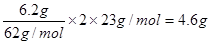 本题解析:试题分析:0.2g氢气的物质的量是0.1mol,所以根据方程式2Na + 2H2O = 2NaOH+H2↑可知,混合物中钠的质量是0.2mol×23g/mol=4.6g,则其中氧化钠的质量是10.8g-4.6g=6.2g。因此根据方程式4Na+O2=2Na2O可知,被氧化的钠的质量是