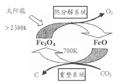 本题答案:(1)①2mol;② 6FeO+CO26FeO+O2↑中氧元素的化合价由—2价升高为0价,每生成1mol氧气转移4mol电子,则每分解lmolFe3O4转移电子的物质的量为2mol;②根据题给转化关系知,“重整系统”发生反应为氧化亚铁和二氧化碳在700K时发生反应生成四氧化三铁和一氧化碳,化学方程式为6FeO+CO2