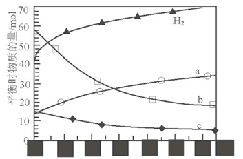 C2H4(g)+4H2O(g)△H,不同温度下平衡时的四种气态物质的物质的量如图所示: