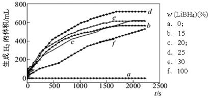 (4)①a.根据图像可知当LiBH4含量为0时,产生的氢气体积为0,这说明25℃时,纯铝与水不反应,a正确;b.随着LiBH4含量的增加,产生的氢气开始增加,这说明25℃时,纯LiBH4与水反应产生氢气,b正确;c.根据图像可知当LiBH4含量是25%时,产生的氢气最多,这说明25℃时,Al-LiBH4复合材料中LiBH4含量越高,1000s www.91eXam.org内产生氢气的体积不一定越大,c错误,答案选ab。