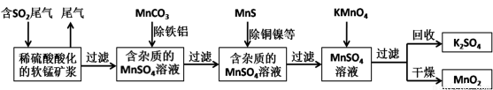 (6)除杂后得到的MnSO4溶液可以通过                  (填操作名称)制得硫酸锰晶体(MnSO4?H2O,相对分子质量为169)。已知废气中SO2浓度为8.4g/m3,软锰矿浆对SO2的吸收率可达90%,则处理1000m3燃煤尾气,可得到硫酸锰晶体质量为        kg(结果保留3位有效数字)。
