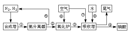 填空题 (16分)工业合成氨与制备硝酸一般可连续生产,流程如下: