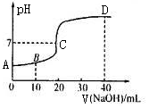 选择题 25C时,用浓度为0.1000 mol/L的NaOH溶液滴定20. 00 mL 0 .1000 mol·L-1的
