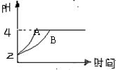 (2)常温下,取pH=2的盐酸和醋酸溶液各100mL,向其中分别加入适量的Zn粒,反应过程中两溶液的pH变化如右图所示。则图中表示醋酸溶液中pH变化曲线的是 (填“A”或“B”)。设盐酸中加入的Zn质量为m1, 醋酸溶液中加入的Zn质量为m2。则m1 m2(选填“<”、“=”、“>”)