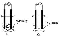 选择题 某化学兴趣小组在家中进行化学实验,按照图甲连接好线路发现灯泡不亮,按照图乙连接好线路发现灯泡亮,由此得出的结论正确的是( )
