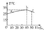 试题分析:A、当HA溶液和NaOH溶液恰好中和时混合溶液温度最高,即b点,此时消耗氢氧化钠的物质的量为0.004mol,得出HA的浓度为0.08mol/L,错误;B、b→c的过程中,温度降低的原因是加入温度较低的氢氧化钠溶液而使混合液的温度降低,错误;C、根据上述分析知,HA为弱酸,溶液呈酸性,NaA为强碱弱酸盐,溶液呈碱性,a→b的过程中,混合溶液中可能呈中性,存在:c(A-)=c(Na+),正确;D、电离平衡常数K=C(H+)·C(A-)/C(HA)=0.01×0.01÷0.08=1.25×10-3,错误。