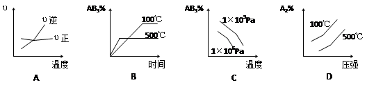 B.升温,反应速率加快,达到平衡所需时间少,且升温平衡右移,AB3%减小,正确;