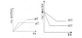 (2)温度越高,反应速率越快,到达平衡的时间就越短,根据图像可知曲线T1到达的平衡的时间少,所以T1大于T1。温度越高A的含量越低,说明升高温度,平衡向正反应方向移动,所以正反应是吸热反应。
