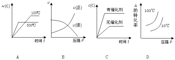 本题解析:由于反应是放热反应,所以升高温度,反应速率加快,但平衡向逆反应方向移动C的含量降低,A的转化率降低,所以A正确,D不正确。增大压强反应速率都是增大的,B不 正确。催化剂不能改变平衡状态,C不正确。答案选A。