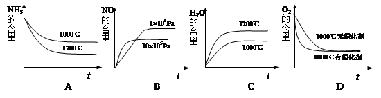 4NO(g)+6H2O(g) ΔH<0若此反应起始的物质的量相同,则下列关系图正确的是