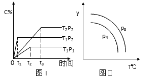 本题答案:C 本题解析 : 试题分析:A.根据图II可知,在温度相同时,压强不同,Y的含量不同,说明该反应是反应前后气体体积不等的反应,所以x不等于2,错误;B.根据图I可判断T1>T2和△H<0,p1<p2,正反应为放热反应,错误;C.增大压强,C增大,说明增大压强,平衡正向移动,正反应方向为气体体积减小的反应,所以x<3。对于此可逆反应,p越大,B的转化率越大,T越高,B的转化率越小,正确;D.在恒容的容器内进行的气体发生反应,气体密度始终不变,错误。 考点:考查可逆反应的化学平衡移动、反应热及物质的转化率的计算的知识。