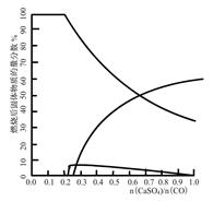 右图是CO与CaSO4在900℃反应后,固体的物质的量分数与n(CaSO4)/n(CO)的关系图。