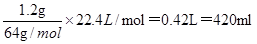 (2)1.2g碳化钙最多生成标准状况下乙炔的体积是