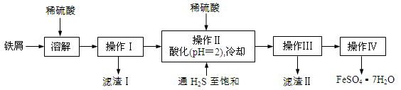 实验题 (16分)绿矾(FeSO4·7H2O)是治疗缺铁性贫血药品的重要成分。下面是以市售铁屑(含少量锡、氧化铁等杂质)为原料生产纯净绿矾的一种方法: