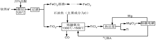 (2)熔融氧化过程中参与反应的物质已知的有TiO2和C,从产物来看C作了还原剂被氧化成了CO,但是TiO2生成TiCl4,Ti的化合价没有发生变化,且多出了Cl离子,所以由此可以猜测还有一种氧化剂参与了反应,而氧化剂就是氯气,所以根据所推反应物和生成物,该反应的化学方程式为:TiO2+ 2C+ 2Cl2