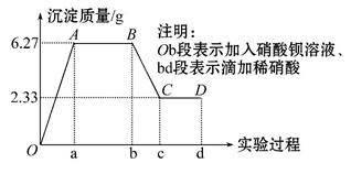 、Cl-中的若干种离子,该小组同学取100 mL水样进行实验:向样品中先滴加硝酸钡溶液,再滴加1 mol·L-1硝酸,实验过程中沉淀质量的变化如下图所示: