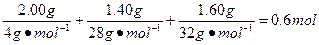 选择题 在273 K和101 kPa的条件下,将2.来源:91考试网 91ExaM.org00 g氦气,1.40 g氮气和1.60 g氧气混合,该混合气体的体积是( )