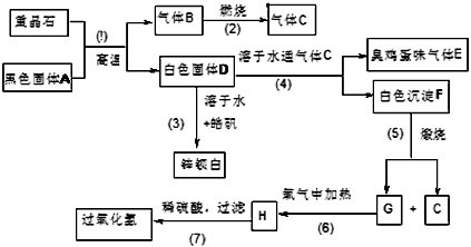 填空题 硫酸钡是唯一的无毒的钡盐,工业上以硫酸钡等为原料通过下列流程反应可以制备锌钡白(BaSO4+ZnS)和过氧化氢:(皓矾为ZnSO4·7H2O)