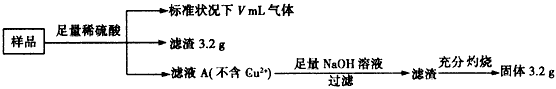 选择题 部分氧化的Fe-Cu合金样品(氧化产物为Fe2O3、CuO)共5.76 g,经如下处理