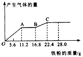 选择题 将某稀硫酸和稀硝酸的混合溶液200mL平均分成两等份。向其中一份中,逐渐加入铜粉,最多 91eXaM.org能溶解19.2 g;向另一份中逐渐加入铁粉,产生气体的量随铁粉质量增加的变化如图所示(已知硝酸均只被还原为NO气体)。下列分析或结果不正确的是