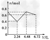 选择题 往含有0.2?mol?KOH和0.1?mol?Ca(OH)2的溶液中持续稳定地通入CO2气体,当通入气体的体积为6.72?L(标准状况)时立即停止,则在这一过程中,溶液中离子的物质的量n和通入CO2的体积V的关系示意图正确的是(气体的溶解忽略不计)[???? ]