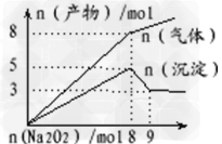 选 择题 将Na2O2逐渐加入到含有Al3+、Mg2+、NH4+的混合溶液中并加热,产生沉淀和气体的物质的量与加入Na2O2的物质的量的关系如图所示。则原溶液中Al3+、Mg2+、NH4+的物质的量分别为??