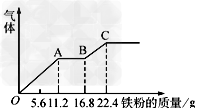 选择题 某稀硫酸和稀硝酸的混合溶液200?mL,平均分成两份。向其中一份中逐渐加入铜粉,最多能溶19.2?g(已知硝酸只被还原为NO气体)。向另一份中逐渐加入铁粉,产生气体的量随铁粉质量增加的变化如图所示。下列分析或结果错误的是?